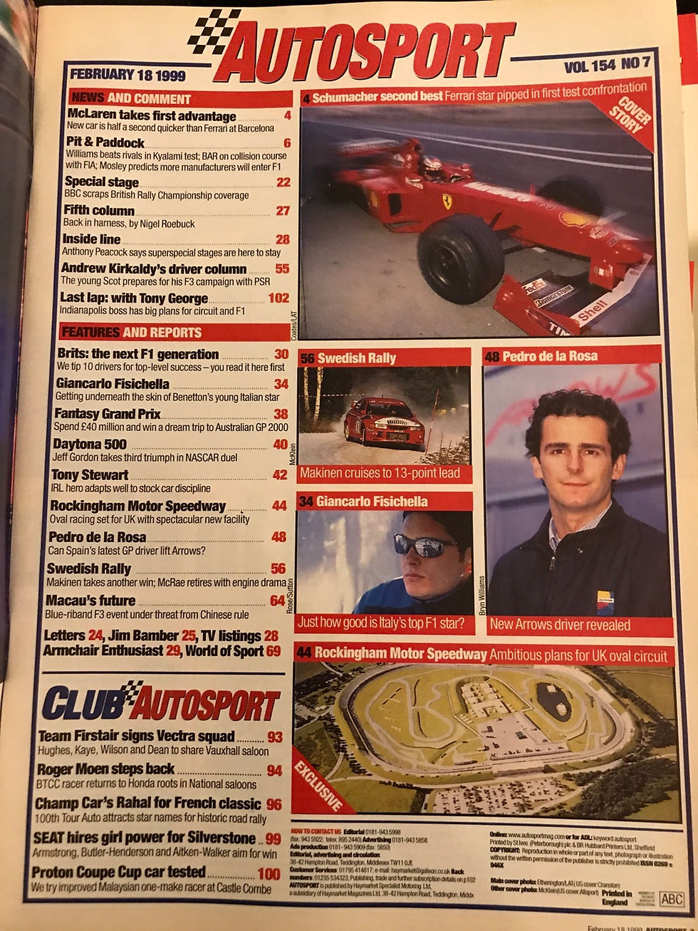 Autosport Magazine 18 February 1999 Makinen Win Swedish Rally Gordon Daytona 500
