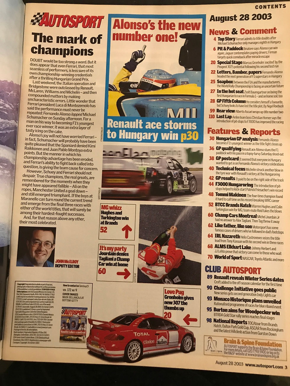 Autosport Magazine 28 August 2003 Alonso Wins Hungarian F1 GP Hughes MG BTCC
