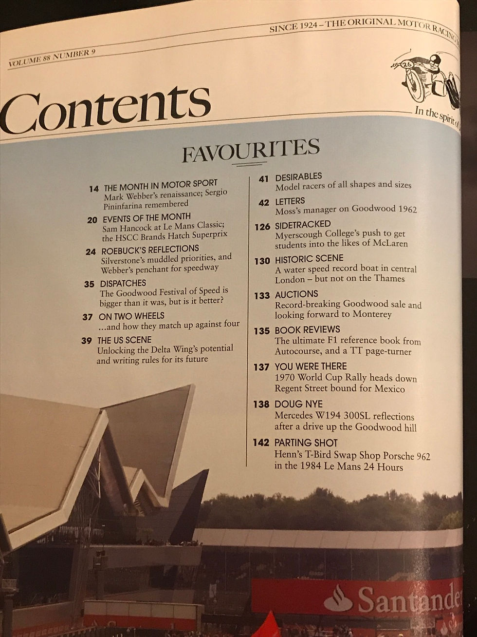 Motor Sport Magazine September 2017 Lunch Anthony Reid 1957 Pescara F1 GP Moss