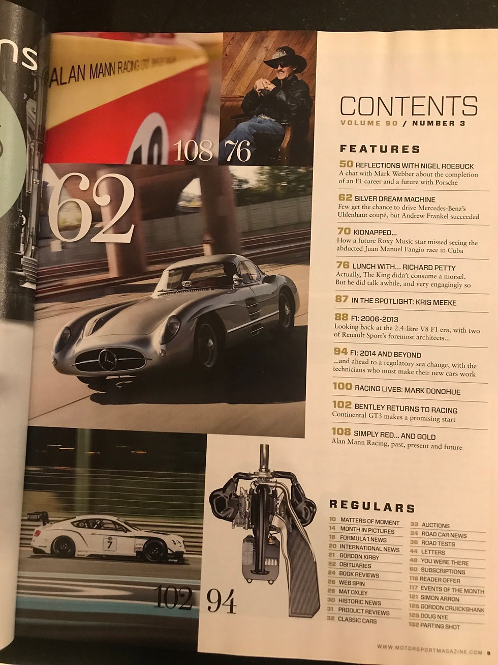Motor Sport Magazine March 2014 Lunch Richard Petty Alan Mann Racing Donohue