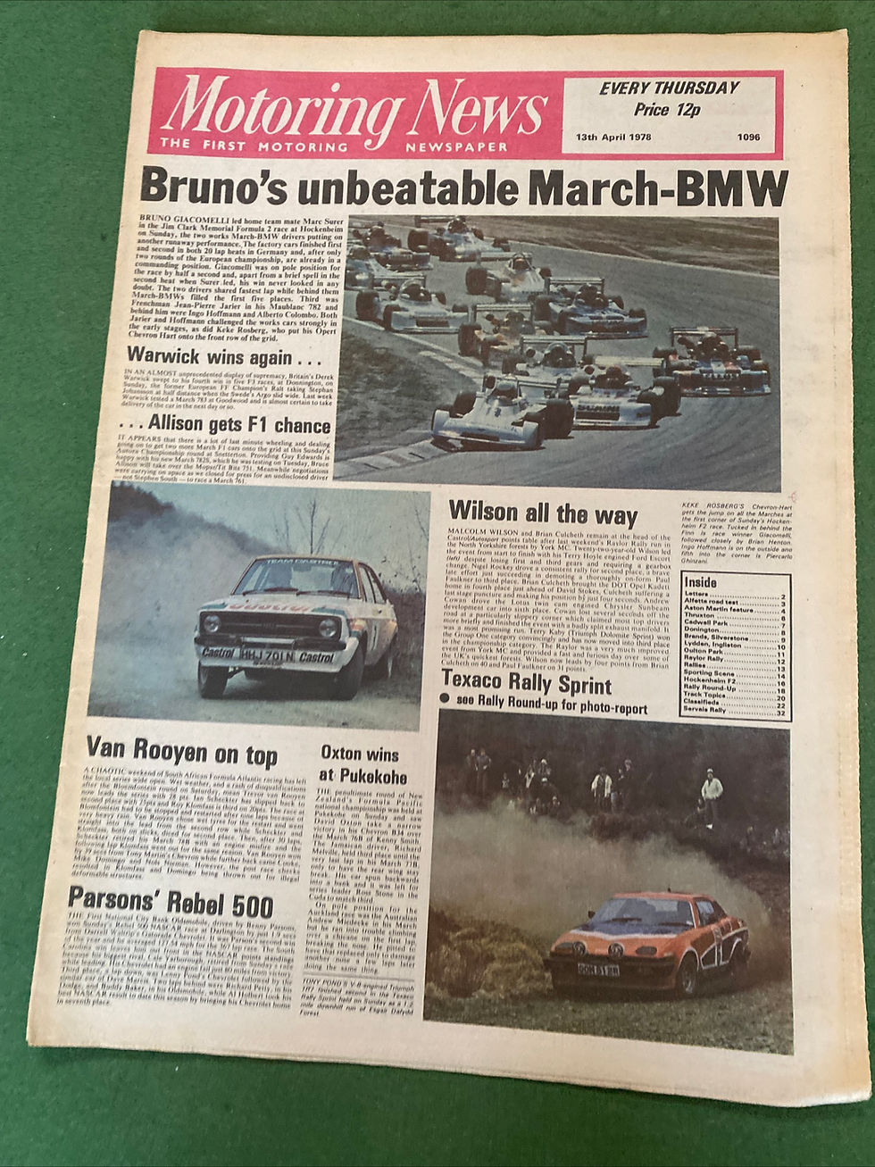 Motoring News 13 April 1978 Giacommelli Wins Hockenheim F2 Wilson Taylor Rally