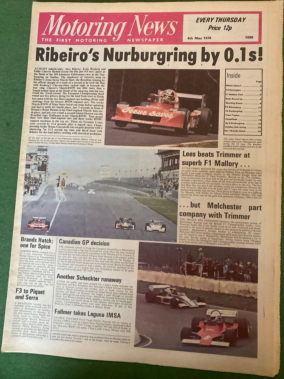 Motoring News 4 May 1978 Lees Wins Mallory Aurora F1 Piquet F3 Ribeiro F2